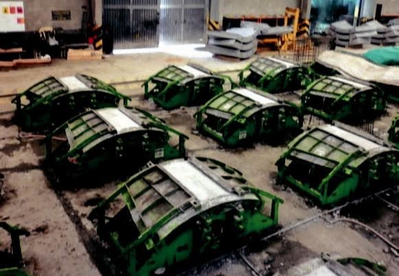 En general, las etapas de fabricación de dovelas son: armado de canastas, alistamiento de los moldes, aplicación de desmoldante y cierre de la formaleta, vaciado del concreto, aplicación de vapor, desmolde y volteado de dovelas, colocación de accesorios, almacenamiento, y transporte de las dovelas al sitio de la obra.